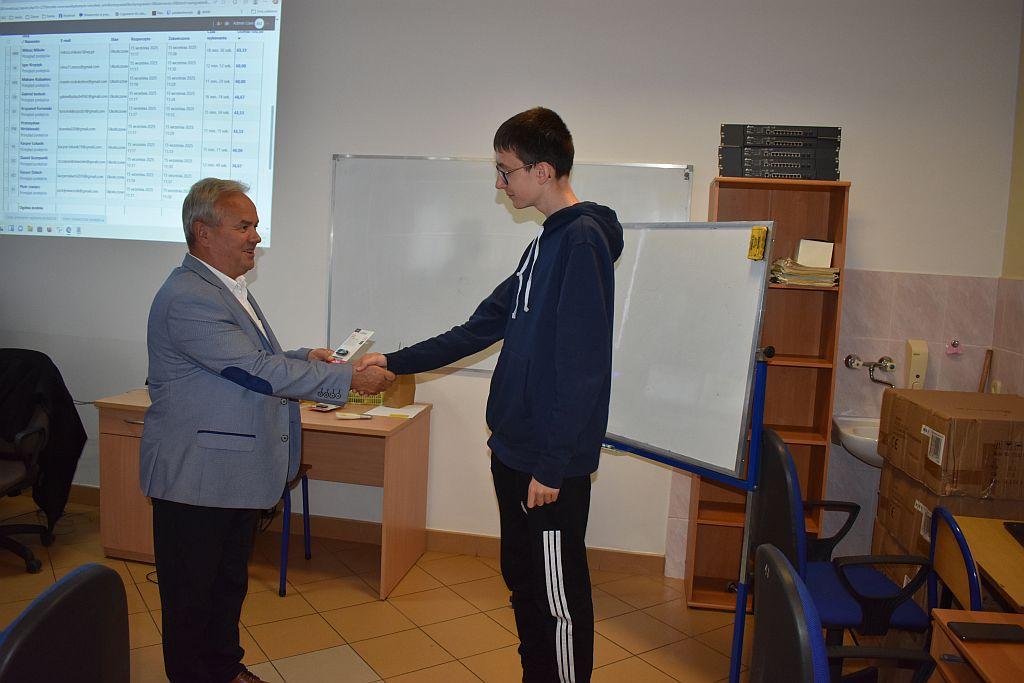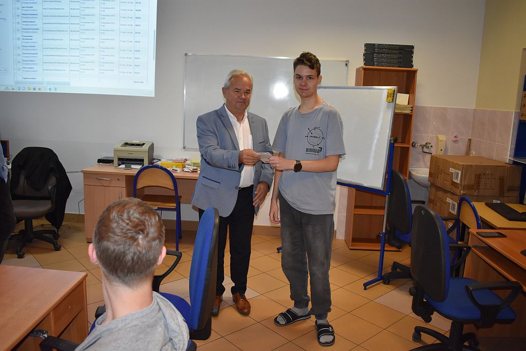 Po emocjonującej rywalizacji tytuł mistrza informatyki klas pierwszych zdobył Miłosz Mikuła z klasy 1m technikum informatycznego, osiągając wynik 66,33% poprawnych odpowiedzi.