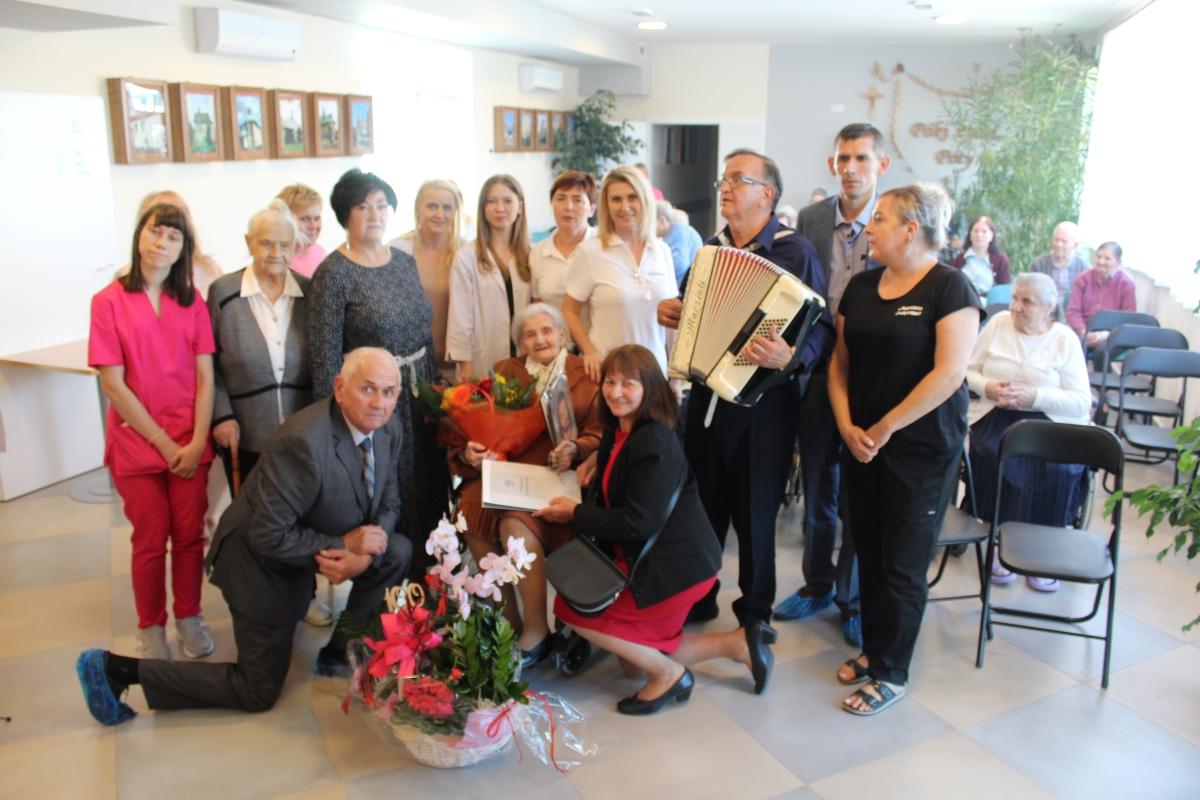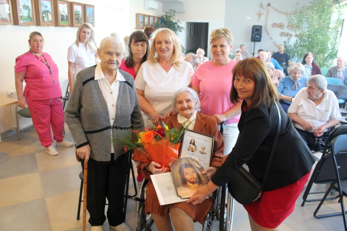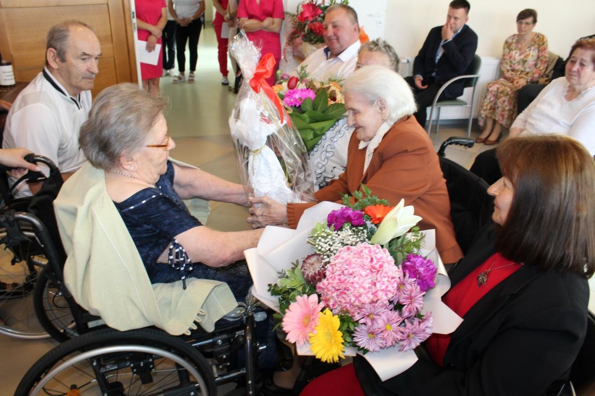 Najbardziej wzruszające życzenia Pani Marianna otrzymała od koleżanek z Zakładu Opiekuńczo-Leczniczego. Stanisława Mazur wyraziła radość z jubileuszu przyjaciółki, a Helena Jagielnik, która ma 102 lata, serdecznie powitała Mariannę Babiarz w gronie stulatków.