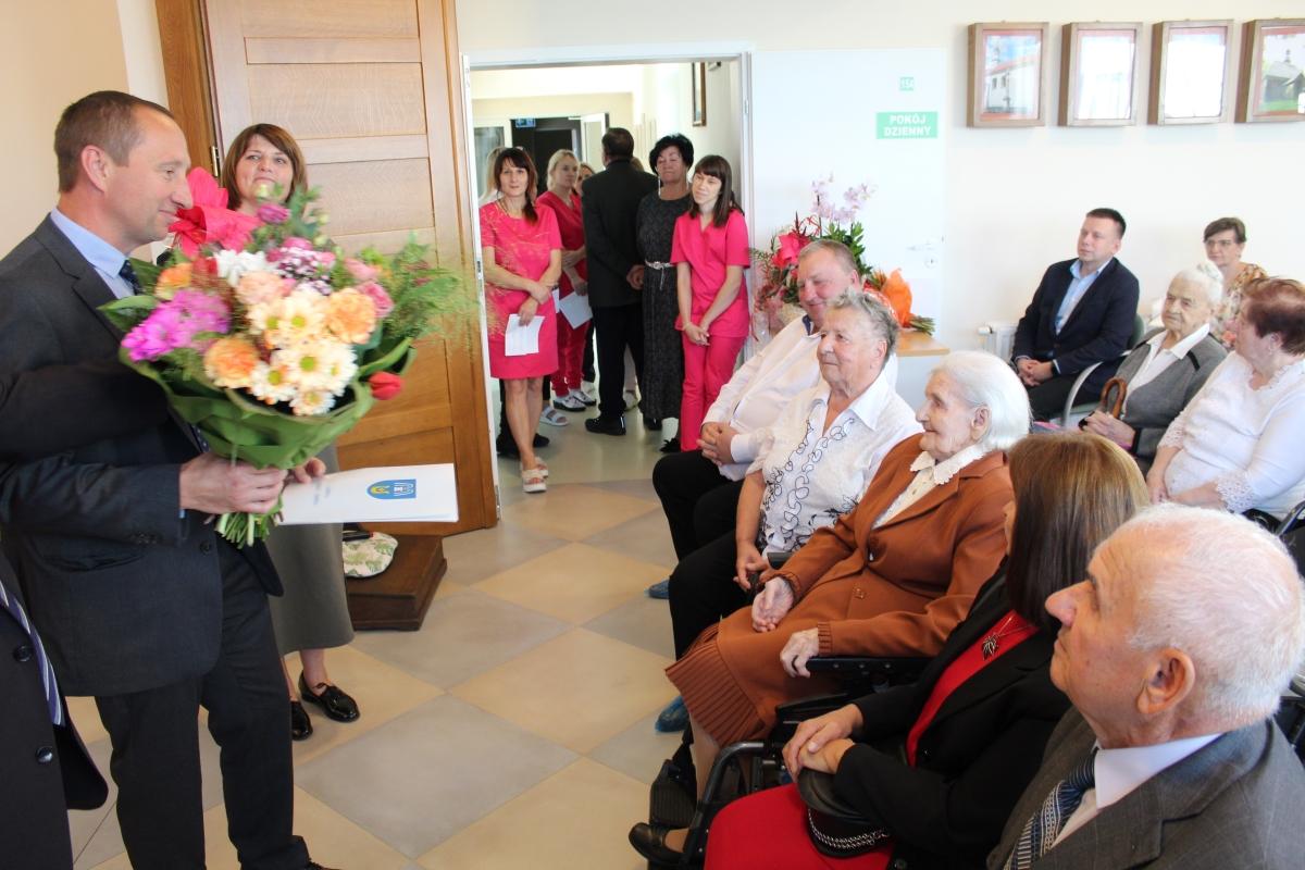 Pani Marianna Babiarz pochodzi z Włosnowic w gminie Solec-Zdrój. Na uroczystości obecny był Wójt tej gminy, Piotr Kalita. Mszę Świętą w intencji jubilatki odprawił proboszcz Parafii Świniary, ksiądz Sławomir Grabiec. Na zakończenie ceremonii złożył Pani Mariannie gratulacje, życzenia oraz wręczył pamiątkowy dyplom i obraz Chrystusa.