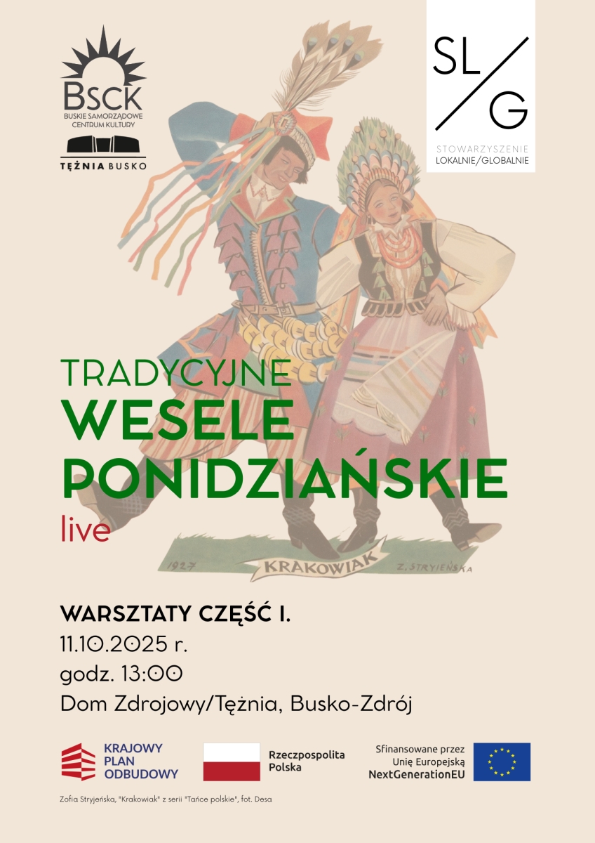 Projekt zakończy się w styczniu 2026 roku widowiskami plenerowymi, podczas których zrekonstruowany zostanie rytuał tradycyjnego wesela ponidziańskiego. Wezmą w nich udział uczestnicy warsztatów, mieszkańcy regionu oraz zaproszeni artyści, tworząc wydarzenie łączące przeszłość z nowoczesną interpretacją.